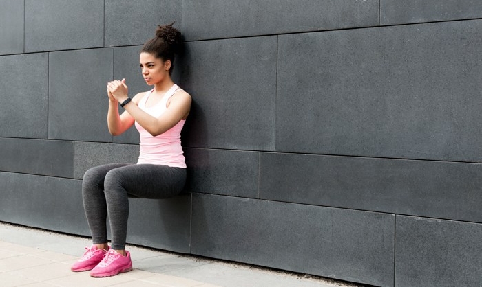 身体站直,背部贴近墙面,任何固顶物体都可以,挺胸抬头,双脚分开与肩同宽,脚尖向前,慢慢下蹲,背部不可离开墙面,直到膝关节有酸胀感时停住不动,腿后夹角不可低于90度,具体角度要根据自己情况来调节,直到双腿酸胀明显颤抖为止,起身后慢走放松。3次为一组,每次间隔1分钟。跑步后多久可以坐下